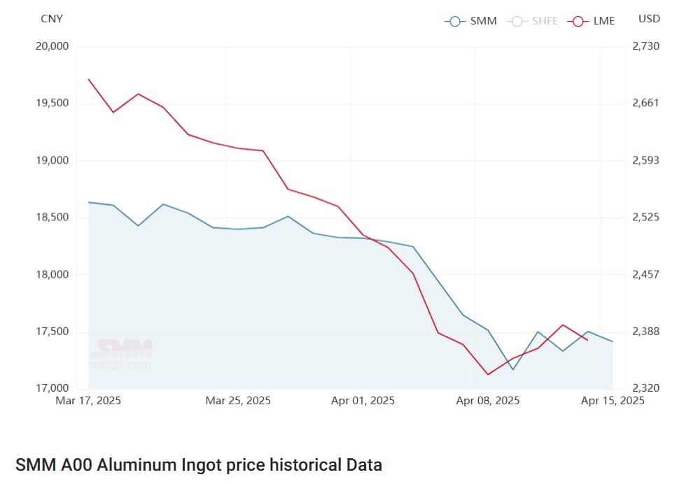 در بورس فلزات شانگهای قیمت آلومینیم در این هفته روند کاهشی داشت و با 13 دلار کاهش نسبت به هفته گذشته در 15 آپریل به 2,377 دلار رسید. با کاهش بار ورودی از داخل چین و افزایش صادرات، موجودی شمش آلومینیم چین کاهش یافت.