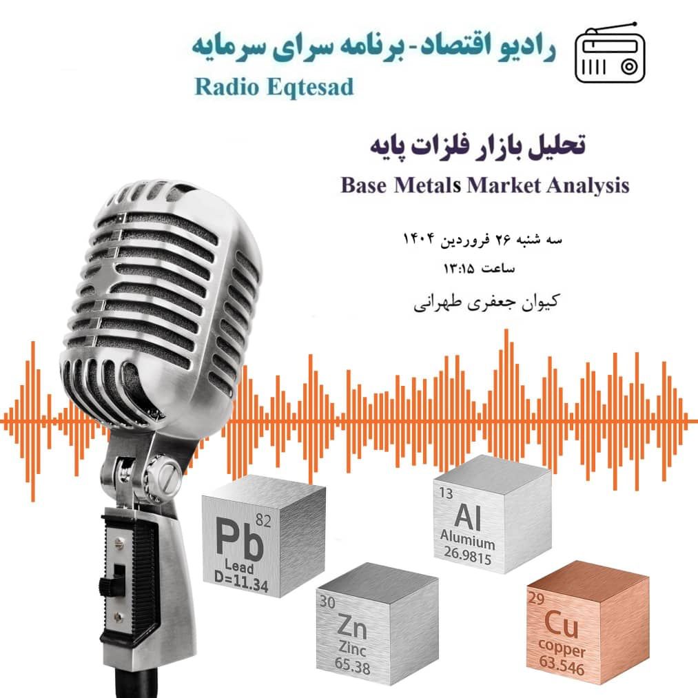 🎙️کیوان جعفری طهرانی امروز (سه شنبه) ۲۶ فروردین 1404 مصادف با 15/04/2025 در ساعت 13:15 در برنامه زنده سرای سرمایه رادیو اقتصاد به تشریح وضعیت بازار فلزات پایه در بورسهای فلزات لندن و فلزات شانگهای پرداخت: