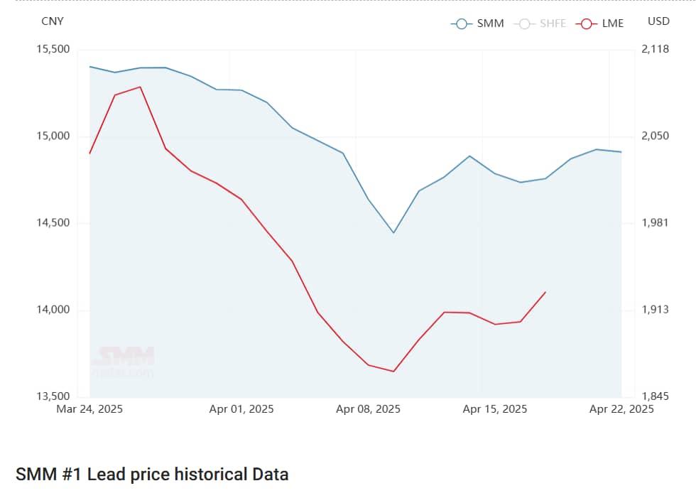در بورس فلزات شانگهای قیمت سرب در این هفته روند افزایشی را طی کرد و با 17 دلار افزایش نسبت به هفته گذشته در 22 آپریل به 2,037 دلار رسید. با کاهش فاصله بین قیمتهای آتی و قیمتهای spot عرضهکنندگان فعالانه اقدام به فروش میکنند. قیمت باتری قراضه به افزایش خود ادامه داد و شرکت های تولیدکننده سرب بازیافتی را در موقعیت زیان ده قرار داد.