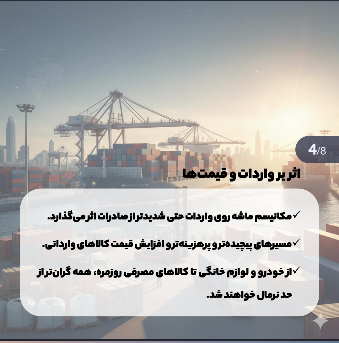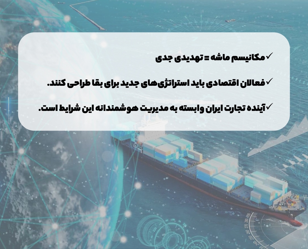 کابوسی تازه برای تجارت خارجی ایران یکشنبه ۳۰ شهریور ۱۴۰۴ کابوسی تازه برای تجارت خارجی ایران مرور دیدگاههای دکتر کیوان جعفری طهرانی درباره تأثیر مکانیسم ماشه بر اقتصاد ایران: دیدگاه ها